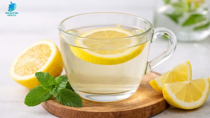 Warm liquids trigger the bowel movements and decrease the amount of gas. Lemon can increase the amount of bile and enhance digestion.